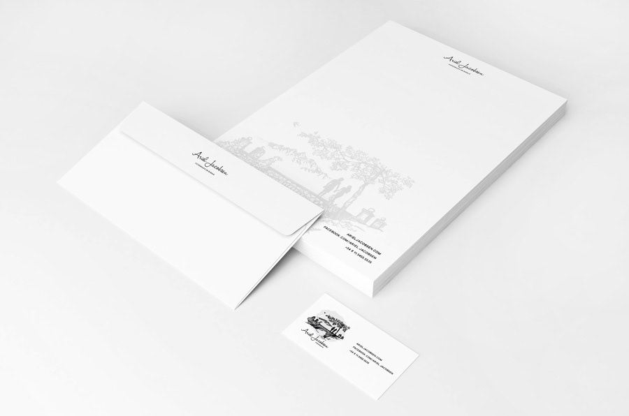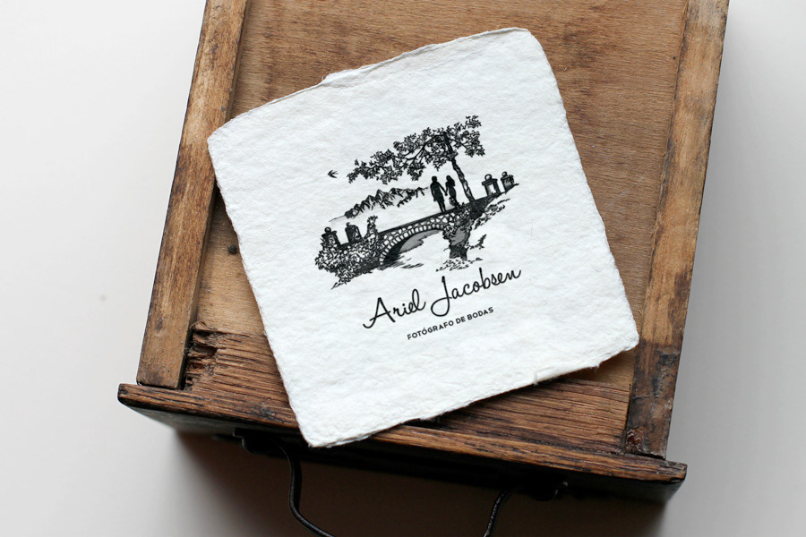 Diseño de logo para Ariel Jacobsen, fotografo de Bodas, ilustracion a tinta de una escena de amor.